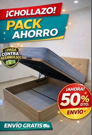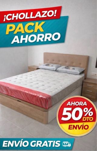 Oferta especial en pack de canapé y colchón. Pide hoy y recibe mañana. - Canapé abatible. - Colchón de alta calidad. -Mesitas una 45€ dos 70€ -Cabeceros 99€ - Disponible en varios colores y acabados. - Precio desde 99€. - Pago por Bizum disponible. - Envío gratuito.
