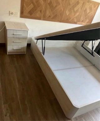 Base de cama con gran capacidad de almacenaje. - Estructura de madera. - Tapa abatible para acceder al interior. - Diseño moderno y funcional.