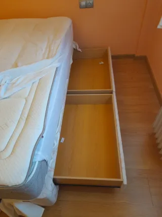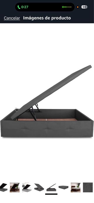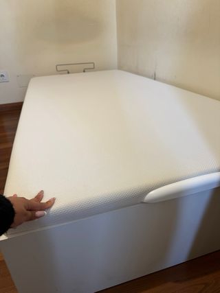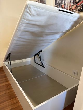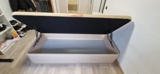 Se vende base de cama canapé abatible con colchón viscoelástico. - Estructura de madera. - Tapizado en tela. - Asas laterales para facilitar el manejo. - Colchón viscoelastico de 27cm. - Amplio espacio de almacenamiento. - Diseño moderno. - Costo 650€.