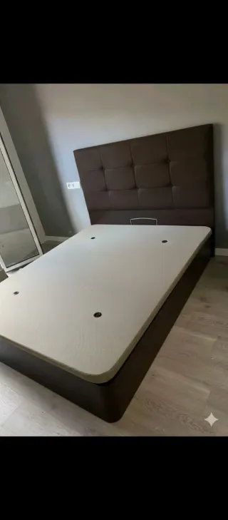 Cama canapé de matrimonio con cabecero a juego. - Medidas: 150x200 cm. - Tapizado en tela. Tiene marcas de uso como se ve en las fotos No incluye colchon