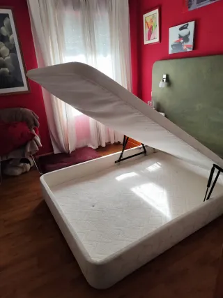 Se vende estructura de cama de 1.90m con canapé y somier. - Estructura de metal y madera. - Canapé de color blanco.