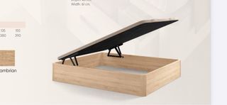 Base de cama tipo canapé con acabado en roble. Ideal para añadir espacio de almacenamiento extra en tu habitación. - Diseño moderno y funcional. - Bordes redondeados para mayor seguridad.