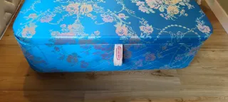 Se venden dos canapés individuales de 90cm. - Estructura de madera. - Tapizado en tela. - Cabeceros de madera con Diseño con estampado floral. - Se regalan cubrecamas como los expuestos