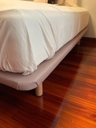 Base de cama tipo canapé de 135x190 cm. Ideal para aprovechar el espacio de almacenamiento. Muy poco uso, está nuevo, tiene menos de dos años, en habitación de invitados - Medidas: 135 cm de ancho x 190 cm de largo. - Estructura robusta. Patas madera clara Se venderia tambien el colchon en caso de estar interesados