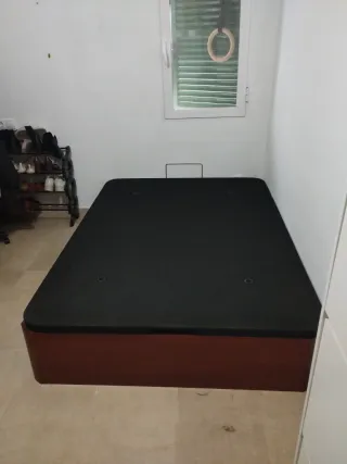 Base de cama canapé con un diseño moderno y funcional. está semi nuevo, tiene poco meses de uso, lo vendo porque me voy de viaje - Estructura de madera con acabado en tono natural. - Tapa tapizada en tela color beige.