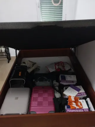 Se vende cama individual completa, formada por un canapé abatible con apertura lateral y un colchón muy cómodo. Perfecta para habitaciones pequeñas o para quienes necesitan máximo almacenamiento sin renunciar al confort. Características del canapé: Apertura lateral, ideal para aprovechar espacios ajustados. Estructura firme y resistente, color blanco neutro que combina con cualquier decoración. Gran capacidad interior: perfecto para guardar ropa de cama, maletas, ropa de temporada, etc. Mecanismo de apertura suave y fácil de usar. Características del colchón: Limpio, sin deformaciones. Firmeza cómoda y estable.