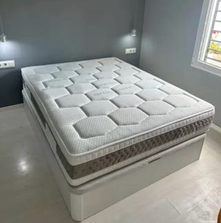 Se vende canapé y colchón en buen estado. - Canapé de color blanco. - Colchón con diseño moderno.