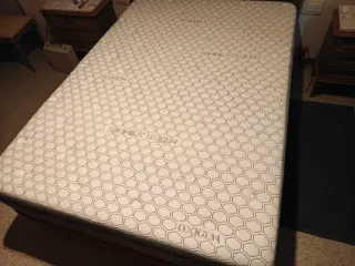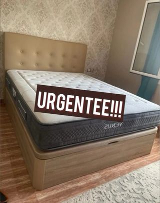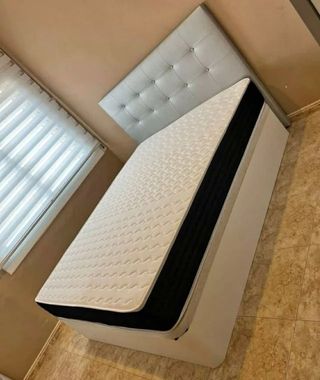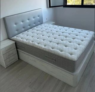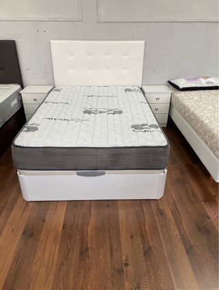 Se vende conjunto de cama de 135cm, compuesto por canapé y colchón. - Recoger en Hospitalet de Llobregat - Medida: 135cm de ancho. - Diseño moderno y funcional.