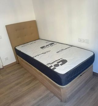 Se vende canapé y colchón individual. - Estructura de canapé de madera. - Cabecero tapizado. - Colchón con funda protectora.