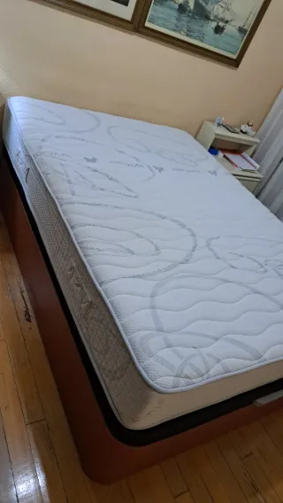 Se vende conjunto de cama completo, listo para usar. El colchón esta como nuevo. - Cabecero de madera. - Base de canapé. - Colchón incluido.