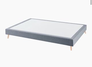 Base de cama tapizada en tela gris con superficie blanca antideslizante. - Medidas: 80x180cm. - Altura de 15cm. - Patas de madera color haya.