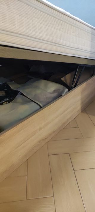 Prácticamente nuevo Se vende conjunto de cama completo. - Canapé de madera. - Colchón. - Cabecero tapizado.