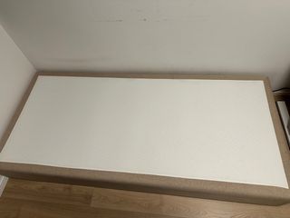 Canapé abatible de madera con base tapizada antideslizante, para que el colchón no se resbale. Comprado en 2023 en Lobide (Mungia). Tiene una pequeña marca en una esquinita, se ve en la foto. Fabricado en España. - Medidas: 150 x 200 cm. Largueros y pieceros de 30mm de grosor recubiertas con melamina. Patas de 40cm recubiertas con papel. Fondo aglomerado de 12mm + melamina blanco. Tapa de tablero DM de 6mm perforado y siliconado. Altura al suelo de 35,5cm. Hueco interior de 28,5cm. Esquina antigolpes (redondeada). Permite una fácil limpieza de la habitación ya que no tiene patas.