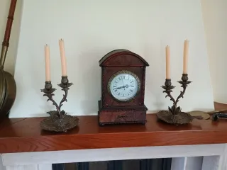 Reloj de mesa y candelabros antiguos