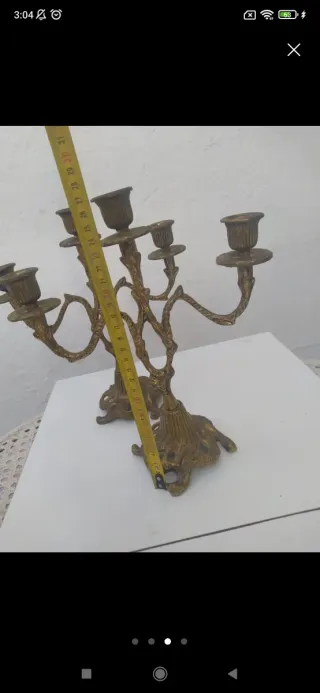 No se que metal es Elegante candelabro de estilo antiguo, perfecto para añadir un toque clásico a tu hogar. - Diseño de metal con acabado dorado. - Base ancha para mayor estabilidad. - Detalles ornamentales en el pie.