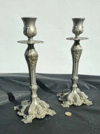 Candelabros antiguos bañados en plata