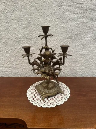 candelabro antiguo en bronce, se puede poner velas o bombillas