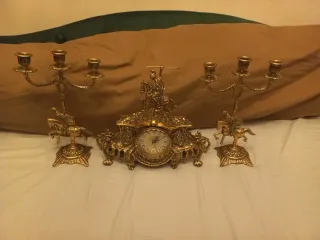 Bronce . Juego de reloj y candelabros. Muy decorados y rococó . El reloj funciona. no se hacen envios.