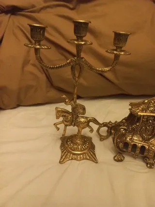 Vendo pareja de candelabros bronce Altura 30cm ancho28cm regalo la s 6 velas