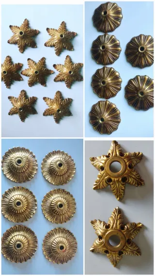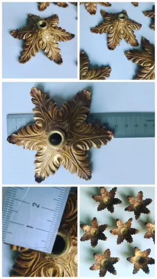 Platillos, bobeches de bronce. -7 bobeches estrella 11cm. 25€. -6/12 bobeches 8cm. 18/30€. -6 bobeches flor 9,5cm. 20€. - 2 bobeches estrella 6,5cm. 8€. En perfecto estado. Adornos, repuestos, embellecedores... Más en mi perfil modernista industrial cerámica nórdico porcelana loza art deco nouveau xv exclusivo vidrio cristal soplado prensado emplomado moldado esmerilado facetado tallado talla sol siglo cartuja retro original macao murano dorado Luis espejo mid century lámpara rústico de ley silla 70 clásico bronce latón 30 bohemia lujo mueble contraste elemento space jardín elsa mil flores isabelino moderno único mimbre