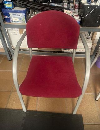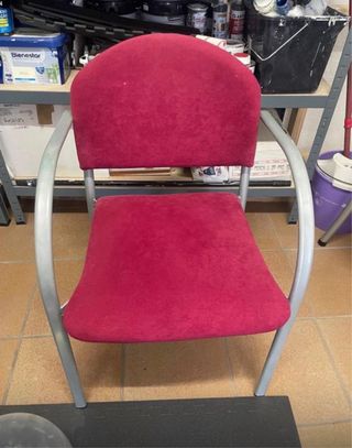 Silla de oficina con un diseño moderno y cómodo. 10€ las dos sillas. - Asiento y respaldo tapizados en tela. - Estructura de metal. - Patas plateadas.