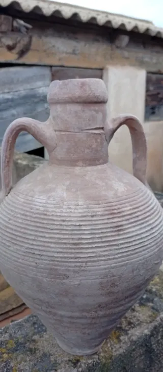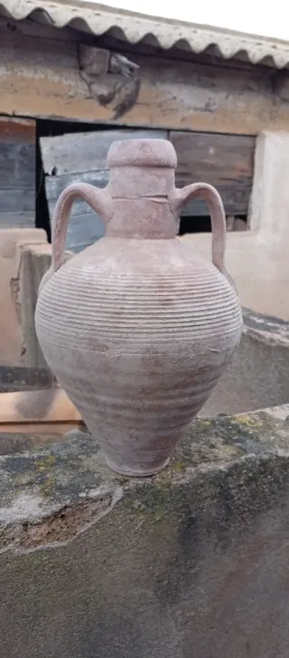 Pieza de cerámica antigua con forma de cántaro. Su diseño rústico y material de barro le otorgan un carácter único. - la boca tiene un trozo retaurado - Cántaro de barro. - Diseño tradicional con dos asas. - Acabado artesanal.
