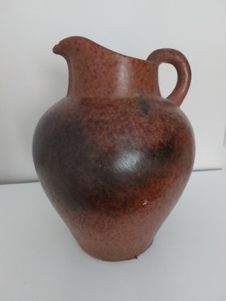 Precioso cántaro antiguo de cerámica. Ideal para decoración. - Cántaro hecho a mano de color marrón rojizo. - Presenta un diseño rústico y artesanal. - Tiene una forma redondeada con un asa y un pico.