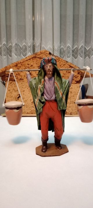 Figura hombre llevando cántaros de Barro y manto lienzado. 17 cm. Alto