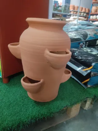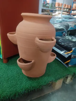 Maceta grande de terracota, ideal para cultivar fresas o hierbas aromáticas.50cm de altura - Diseño con múltiples niveles para plantar. - Acabado rústico y natural.