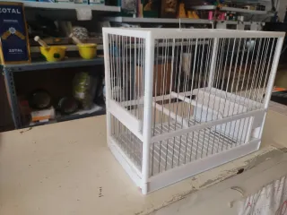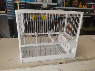Jaula blanca para pájaros, modelo C2. Ideal para mantener a tus mascotas en un espacio seguro y cómodo. - Diseño de barras metálicas. - Bandeja extraíble para facilitar la limpieza.