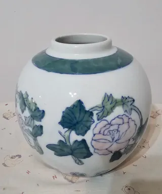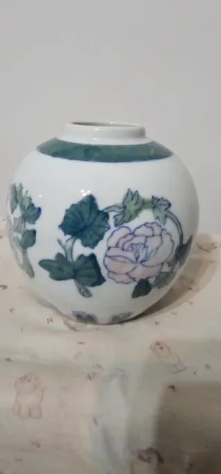 Jarrón de porcelana blanco y verde
