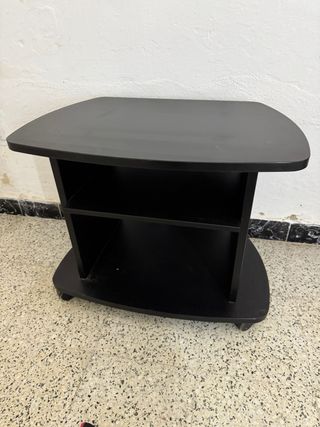 Mueble auxiliar con ruedas, ideal para colocar tu televisión o como mesa auxiliar. - Diseño moderno y funcional. - Dos estantes para almacenamiento. - Base con ruedas para fácil movilidad. Medidas en las fotos Para recoger en cantillana