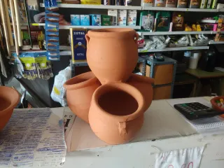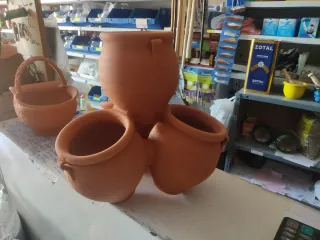 Maceta decorativa de terracota, ideal para dar un toque rústico a tu hogar o jardín. - Diseño artesanal. - Acabado natural.altura 39 cm y 16 cm de diámetro de cada macetita