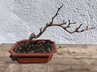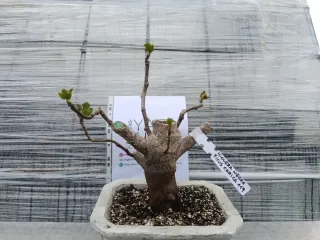 Bonsái de higuera, especie Ficus Carica. Un árbol con un tronco robusto y ramas que empiezan a brotar. Altura : Anchura : 24 (31) x 29 cm. Maceta : 7 x 19 cm. Visita nuestra página de Instagram para estar al día de nuestras últimas novedades. Número 123.