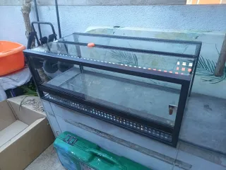 Terrario con medidas estándar. - Estructura negra. - Paneles de cristal transparente.