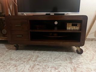 GRATIS PARA REGALAR Conjunto de mesa de comedor y mueble de salón y un recibidor en tonos oscuros. A recoger en Carcaixent El interesado los tiene que desmontar y bajar del piso, es un tercero sin ascensor