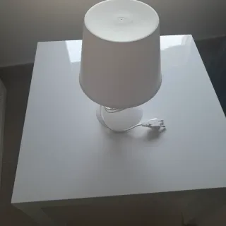 Conjunto de mesa auxiliar y lámpara de mesa. - Mesa con acabado brillante. - Lámpara con pantalla cónica.