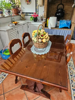 Mesa de madera. - Ideal para reunir a varios comensales. - Diseño robusto y elegante.