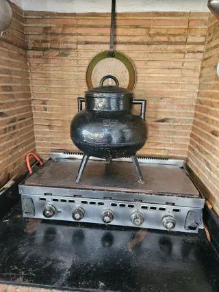 Paellero de gas con manguera para conectar a bombona. - Aro exterior de gran diámetro. - Soporte robusto para la paellera. -le falta manguera carchofa no recater 20€ ultimo precio