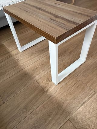 Mesa auxiliar con un diseño moderno y elegante. - Acabado en tonos beige y marrón. - Material de madera. Tiene algun peladito