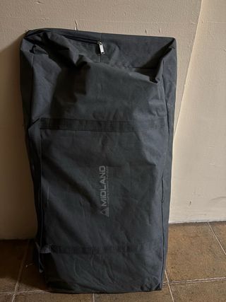 Funda de transporte para mobiliario de camping de la marca Midland. - Color gris. - Fabricada en tela resistente. - Cierre con cremallera. - Asas para facilitar el transporte. Rejilla un poco agujereada, de ahi su precio