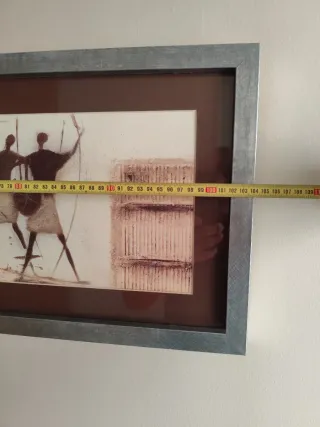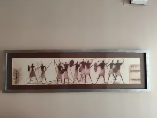 Precioso cuadro decorativo con una escena de guerreros africanos . Ideal para dar un toque étnico a tu hogar.Pasillo ,entrada y comedor. - Tonos tierra y ocres. - Marco madera color metalico. - Cristal en muy buen estado.