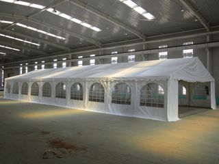 CARPA FIJA DE GRAN TAMAÑO PARA EVENTOS. CARPA INDUSTRIAL PARA GRANDES EVENTOS, CARPA PARA FIESTAS... LONA: PVC 800N. 100% Impermeable. ESTRUCTURA: tubo 50mm Ø/unión 54mm Ø acero galvanizado ALTURA: 3m lateral / 4,42m cumbre PESO: 865 kg INCLUYE: paredes laterales, piquetas y vientos * Envío gratis a la península. Islas Consultar.