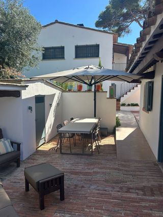 No es una sombrilla cualquiera como la que encontrarás en súper o tiendas no oficial.Preciosa sombrilla de Maison du Monde, ideal para terrazas y jardines patios Cuerpo de Metal aluminio madera y el toldo de tela impermeable ignifuga de color marfil . Me costo 299€ utilizada un mes . Mecanismo para abrir y cerrar con facilidad . Tiene un golpe de 15 cm del brazo,reparado (tiene 8 brazos ) ver fotos ....Esta solucionado y esta perfecto como se ve en estas fotos recientes . Puedes verlo sin compromiso.(medidas abajo indicadas cuando esta cerrado ) Recogida en Begur,Girona. preferiblemete. - Medidas: 3x4 metros - Perfecto estado