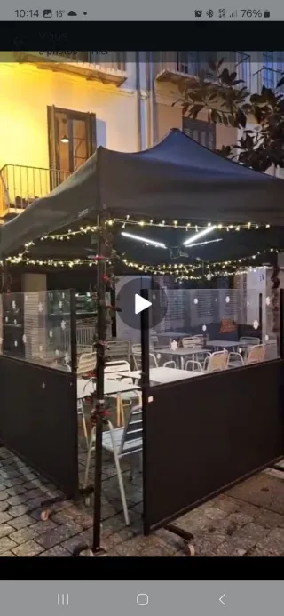 Carpa plegable de tela, útil para diversos eventos o usos. - Estructura metálica. - Color blanco. Está un poco manchada por el uso (sol etc..) pedo funciona perfectamente