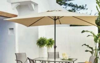 Sombrilla de jardín beige de 3 metros de diámetro.