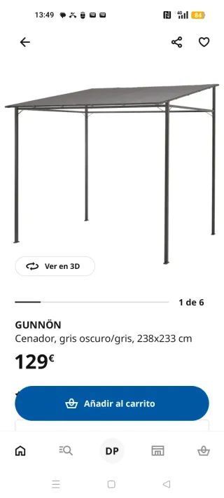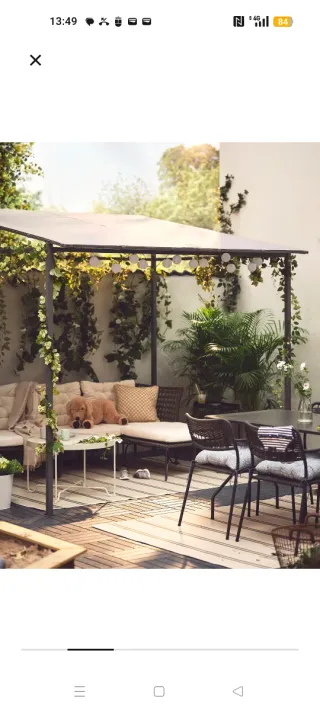 Pérgola modelo GUNNÖN de Ikea, en color gris oscuro y gris. Sus dimensiones son 238x233 cm. - Estructura de metal. - Techo de tela. - Ideal para exteriores.