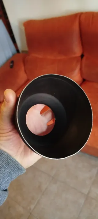 Parasol metálico para lente de cámara. - Diámetro de 57.5 mm. - Color negro y plateado.
