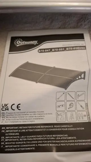 Toldo de policarbonato de la marca Outsunny, con unas medidas aproximadas de 80 x 200 cm. Es ideal para proteger entradas o ventanas. - Diseño curvo. - Estructura resistente.