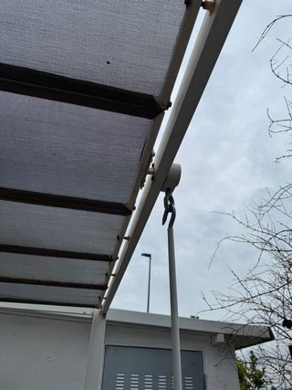 Pérgola de aluminio de 3x3 metros. - Estructura robusta. - Techo de tela microperforada abatible para dejar pasar aire o luz a tu gusto. Se encuentra desmontada lista para venir a recoger cerca de Cheste. No se hacen envíos.